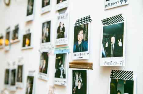 当日お越しいただいたゲスト皆さまには、 受付時にチェキでご自身を撮影していただき、 挙式直前のお祝いの気持ちを込めたメッセージを ご記入いただきました。 撮っていただいたチェキは、 披露宴スタートの前に皆さまで会場前に貼っていただき、 ゲスト皆さまの手で飾り付けを完成させていただきました♪