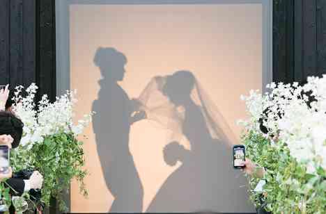 ブライダルフェアに参加して見学した際に、京都最大級の開放感あふれるチャペルに一目惚れし、朱雀邸のチャペルの設計を活かした、見たことがないシルエットベールダウンセレモニーができたことがポイントです。 長いバージンロードは会場内全体の色合いもあって、選んだウエディングドレスが映えるところも素敵でした。