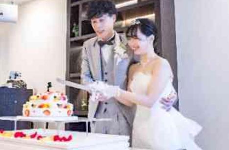 ウェディングケーキご入刀。ご披露宴ご入場後、皆様で乾杯をし、お食事歓談の中大切なゲストの方に見守られながら初めての共同作業を行いました。ご入刀の後にはファーストバイトをし会場内は大盛り上がりでした。ウェディングケーキのそばにある花びらもお打ち合わせの中でたくさん悩みせっかくだからとこだわった花びらです。