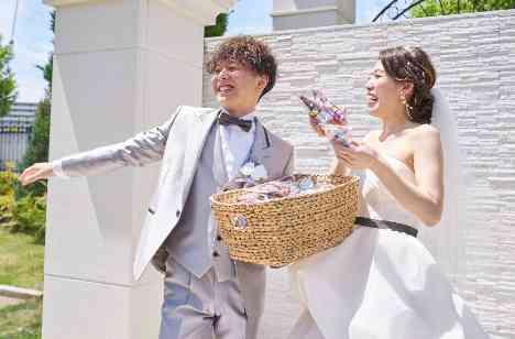 挙式の後ガーデンセレモニーにてゲスト全員参加となるお菓子まきを開催!!カゴいっぱいにたくさんのお菓子をご用意されたおふたり。ゲスト全員へと行き渡るよう、おふたりのお近くから遠くまで目一杯楽しそうにお菓子を投げられました。小さなお子様ゲストはもちろん、大人のゲストのみなさまも楽しめた大盛り上がりのセレモニーとなりました。