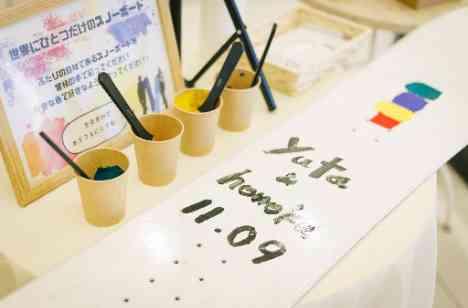 新郎新婦様の共通の趣味であるスノーボード。おふたりの思い出が詰まったボードをリメイクし、受付でゲストの皆様にペイントを行って頂きました。新郎新婦様の要望は「好きな色で好きなように!」そんなおふたりの思い通り、カラフルなペンキでメッセージやイラストを彩って頂き、たくさんの愛が詰まった世界に一つだけの素敵なボードが完成致しました!