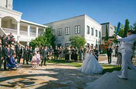 大勢のご友人が参加されたトスバッティング!野球・ソフトボールの経験を活かし、挙式後のアフターセレモニーの演出にトスバッティングを取り入れました。お二人のサインが入ったボールをそれぞれのご友人に向け飛ばしました。ホームラン並みのバッティングにゲストも大盛り上がり!ご友人もしっかりキャッチして頂き素敵なお写真も撮影出来ました。
