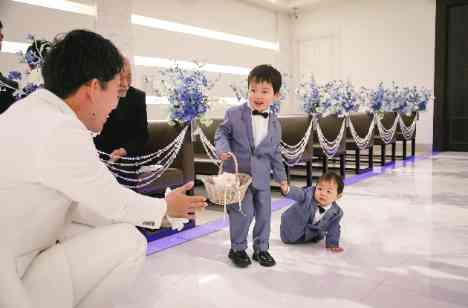 挙式で使用する欠かせないアイテムの1つ、それは新郎新婦を結ぶ結婚指輪。そんなおふたりの大切な愛の結晶を運んでくれた可愛いリングボーイたちがいました。どきどき…わくわく…どんなお気持ちで届けてくれたのでしょうか…リハーサルはママと一緒にでしたが、本番ではしっかりとおふたりの手で新郎新婦様へと運ばれ会場中はあたたかな拍手と笑顔で包まれました。