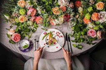 少人数でのパーティは、ふたりもゲストと一緒に楽しめる“流しテーブル”コーディネートがおすすめ!美味しいお料理に会話が弾み、和やかな時間を楽しんで。