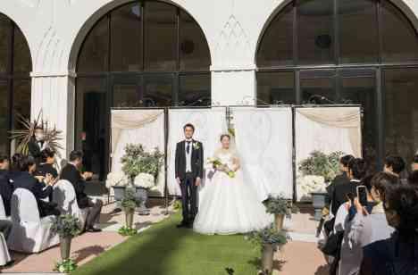 屋内のチャペルは少し小さめですが、ゲストとの距離が近く、アットホームな挙式にぴったりです。 私たちはゲストが多かったため、立ち見が出てしまうため、中庭のコートヤードでの挙式を選びました。 当日はお天気にも恵まれて、12月とは思えない暖かさでしたが、ゲストには膝掛けも用意されており、ゲストに寄り添ったおもてなしでした。