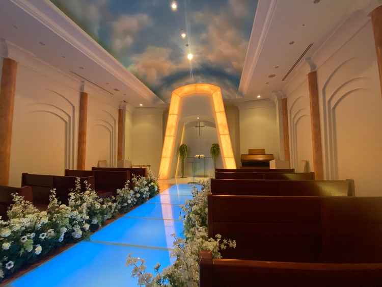 チャペルの雰囲気を、ライトで変えられるのはいいなと思いました。ホテルということもあってしっかりしている印象でした。