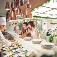 【臨場感あふれるLiveキッチン】出来立てのお料理・五感を刺激する調理パフォーマンスもゲストへのおもてなしのひとつ。ストーンアイスやフランベetc...ゲストが笑顔になる演出をフェアで体験して!