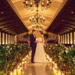 【選べる2つのチャペル】1.天高7mの開放感×スワロスフキーが輝く純白のチャペルで憧れの花嫁体験/2.滝のせせらぎと温かな光、自然の質感に包まれたナチュラル空間。灯されたキャンドルが誓いのシーンを演出