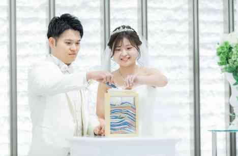 ゲストの方々とお二人で一緒に作り上げる世界に一つだけの結婚証明書! このサンドセレモニーには『別々に歩んできた2人が1つになり、同じ道を歩んでいく』という素敵な意味があります♡ 砂の色ごとに意味があり、ゲストの方はそれぞれ選んでいただきます!挙式本番にはお二人が最後砂を入れてふたを閉めて完成となります!! 結婚式らしい、そしてお二人のオリジナリティが詰まった演出となりました!
