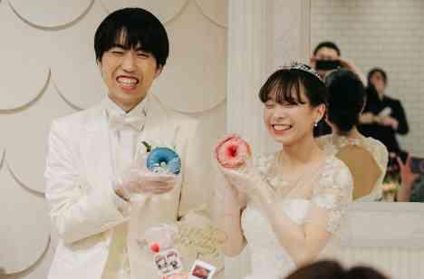 お二人がご準備したケーキはオリジナルのドーナツタワー☆ カラフルなドーナツが並びフォトジェニックなタワーが皆様にお披露目され、ケーキとはまた違う登場に会場も大盛り上がり☆ ケーキ入刀を終えると、お二人ともドーナツを手にし同時に「あ~ん」♡ お二人で食べさせ合う仲睦まじいお姿にほっこりする瞬間でした♡