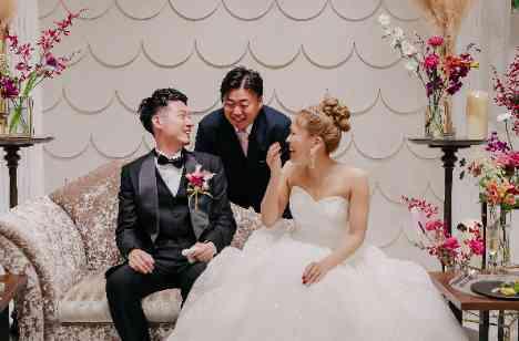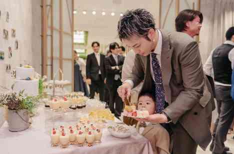 お二人が扉の前にスタンバイ!そして合図とともに扉がオープンするとそこにはデザートビュッフェのご準備が!! ホワイエにはずらりと様々なデザートが並び、ビュッフェを楽しむ皆様の姿にお二人も笑顔が絶えません♡歓談やお写真も楽しまれ、なごやかな時間が過ぎていきました。 皆様に楽しんでいただきたい!という想いが素敵な思い出の時間を作りました♡