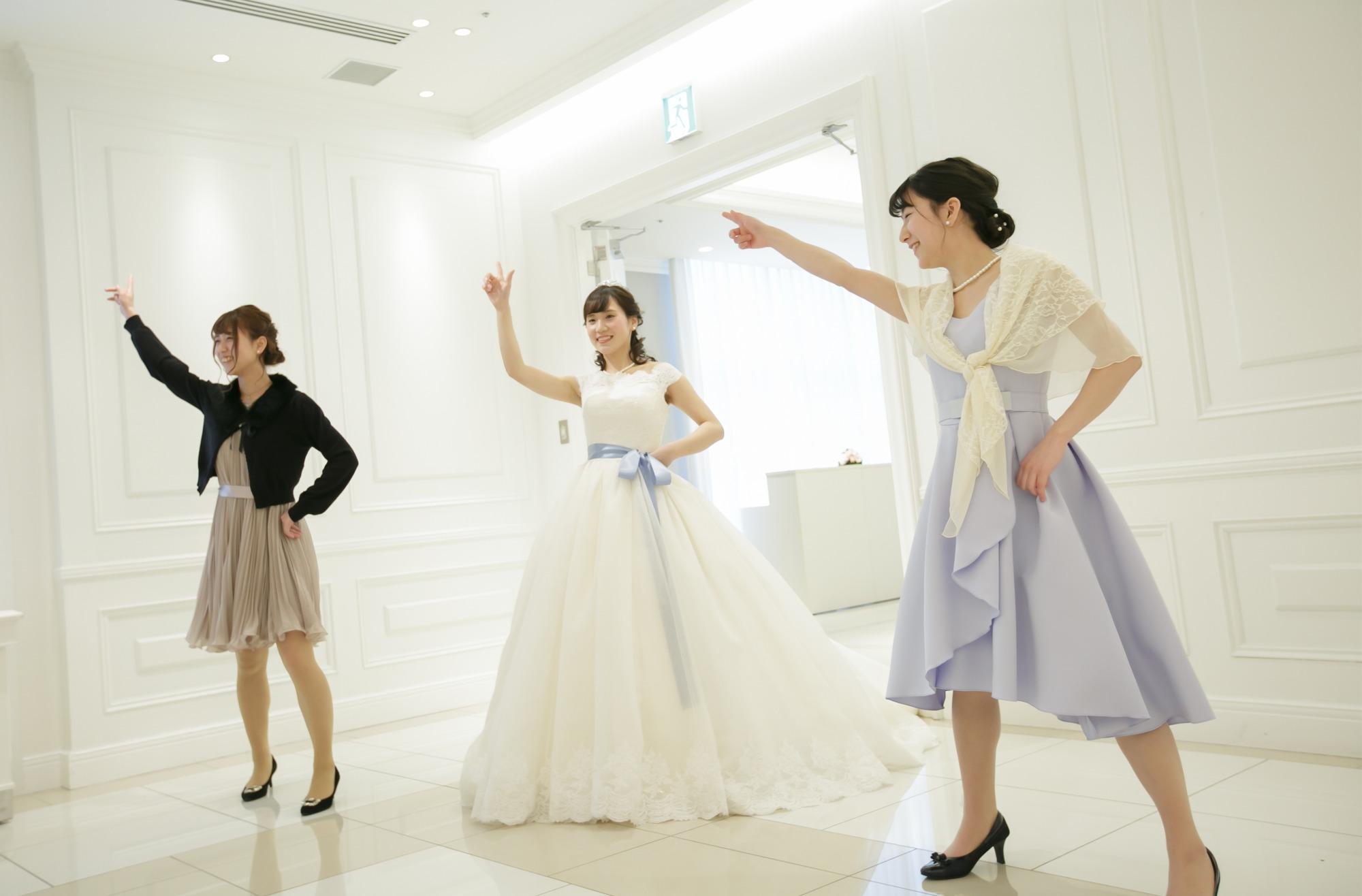 再入場は仲良しのご友人さまと♡ なんと...ダンスをしながらの再入場です! ご新婦様がセンターに立ち、会場を盛り上げてくださいました♡ これにはゲストの皆さまも思わずノリノリに♪ 会場全体が一体となるような素敵な演出でした♪