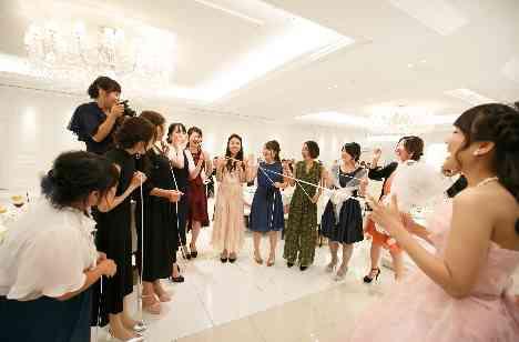 ブーケプルズなどの演出を入れながらも、ゲストの皆さまとお話する時間も大切にされたおふたり♪ お写真を撮影する時間もつくり、自然とおふたりの元へゲストの皆さまが集まるような素敵な空間に・・・・♡ 皆さまの楽しそうな表情がとても印象的で、全員の記憶に残る披露宴となりました♪