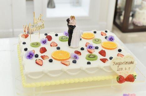 会場内は春らしく桜とピンクを使ったコーディネートで、可愛らしい雰囲気のご新婦様にピッタリ♪ 会場内はもちろん、ケーキにもとてもこだわったおふたり! ケーキのクリームの色と、ご新婦様のカラードレスの色を合わせて 世界観を統一♡