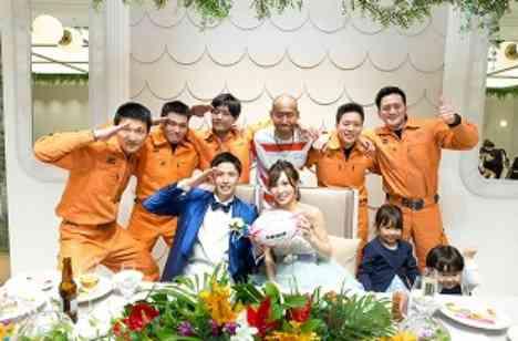 Kiyotakaさんの職場の方々には、余興をしていただきました。ユーモア溢れる楽しい余興に会場は大盛り上がり!会場の熱気を高めてくださいました♪記念に皆様と一緒にお写真も!演出ごとに、ゲストとのお写真タイムを取り入れてくださったおふたりのご結婚式はゲストの皆様からも大好評でした!