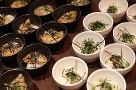 コース料理の結びには、おふたりからデザートビュッフェならぬお茶漬けビュッフェのプレゼント♪ お茶漬けなら、甘いものが苦手な方やコース料理でお腹がいっぱいになってしまった方でもするするっと食べれてしまいますよね^^当日は軽く行列ができるくらいの大好評でした♪