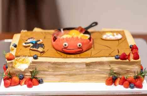 ウェディングケーキは「ハウルの動く城」に出てくるカルシファーをモチーフにしたケーキ 定番のケーキ入刀ではなく、あの名シーンを再現したい!というご希望でフライパンの上に卵を割り入れていただきウェディングケーキを完成させていただきました この日のために卵を片手で割る練習をされた新郎様 ゲストからは大きな歓声と拍手があがりました