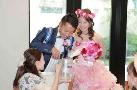 披露宴では「楽しむ」のテーマ通り、新郎新婦のお二人も大切な方々と一緒に1分1秒余すことなく楽しまれました!中でも、ずっとご新郎様の夢だった“ビールサーバーを背負っての入場”はゲストの皆様からも大好評♪お二人にサーブしていただくビールは、日頃飲むビールとは一味も二味も違ったはず!!ゲストへのおもてなしに気を配りながらも、しっかりとご自身の夢も実現出来、会場には終始笑顔の花が咲き誇りました!!