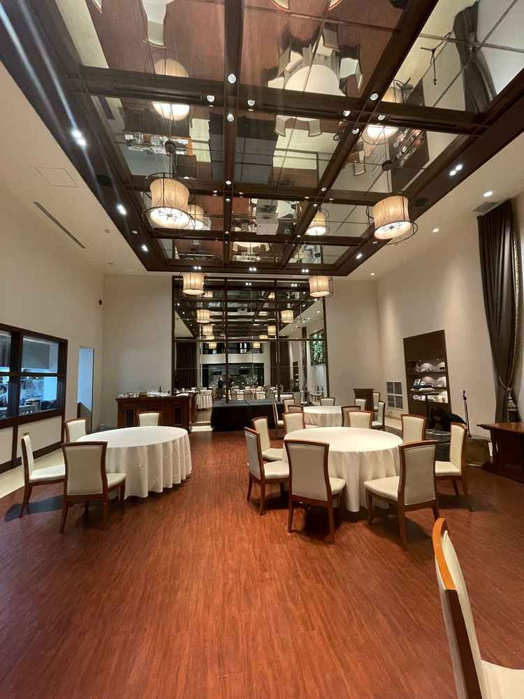狭さが目立った。雨天時ガーデンが使えなくなるとかなり狭くなると感じた。新郎新婦の席の後ろの装飾が好みでなかった。