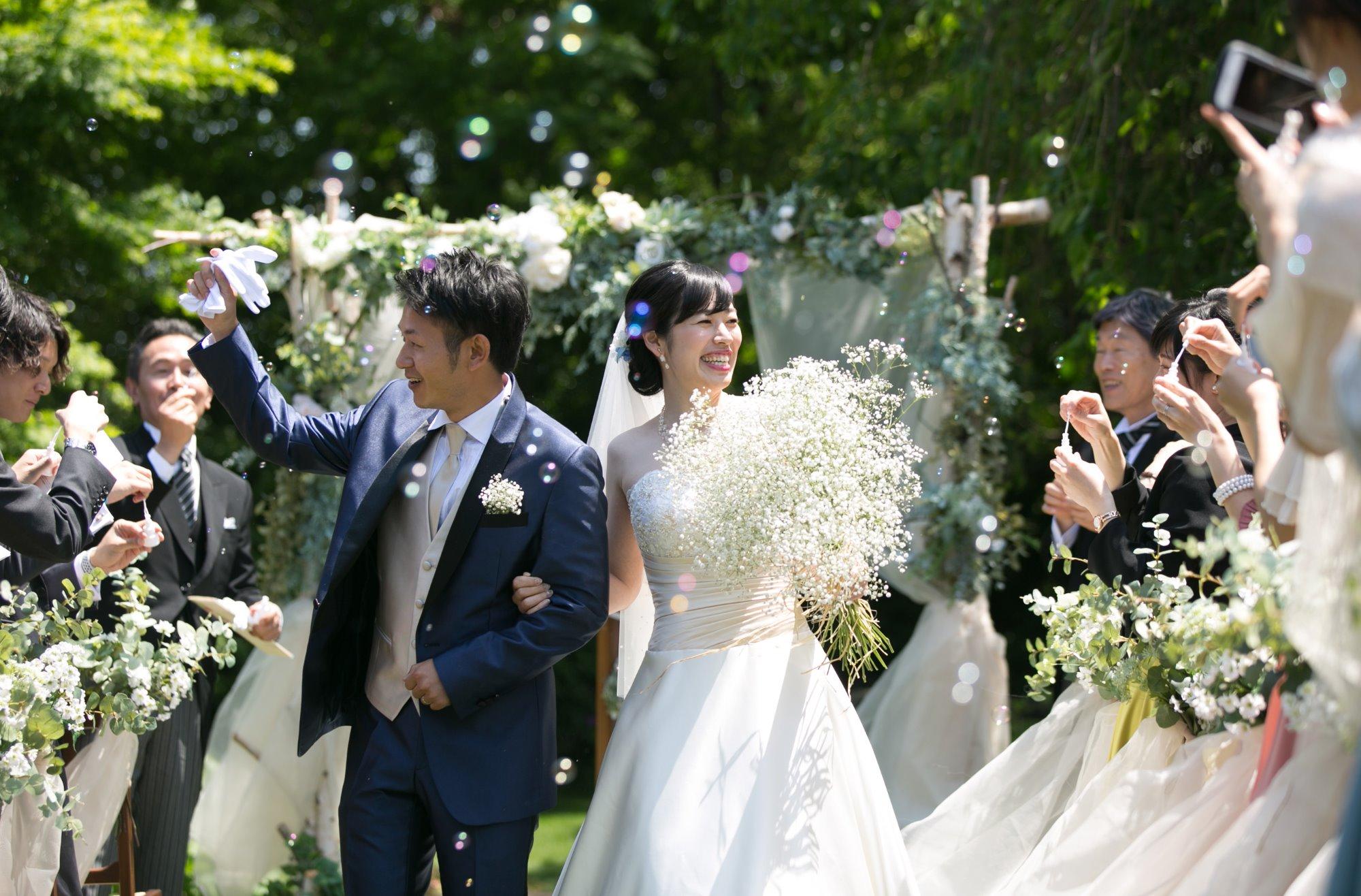 晴れた青空、太陽の下でガーデン挙式を行うことが出来て、本当に良かったです!風が気持ち良くて、バブルシャワーもキラキラしていて素敵でした。 開放的で和やかな雰囲気、みんなもリラックスしてくれ、楽しめたかなと思います。 ゲストは「ガーデン挙式は初めて」という人がほとんどで、「ふたりらしくていいね」と言われて嬉しかったです!