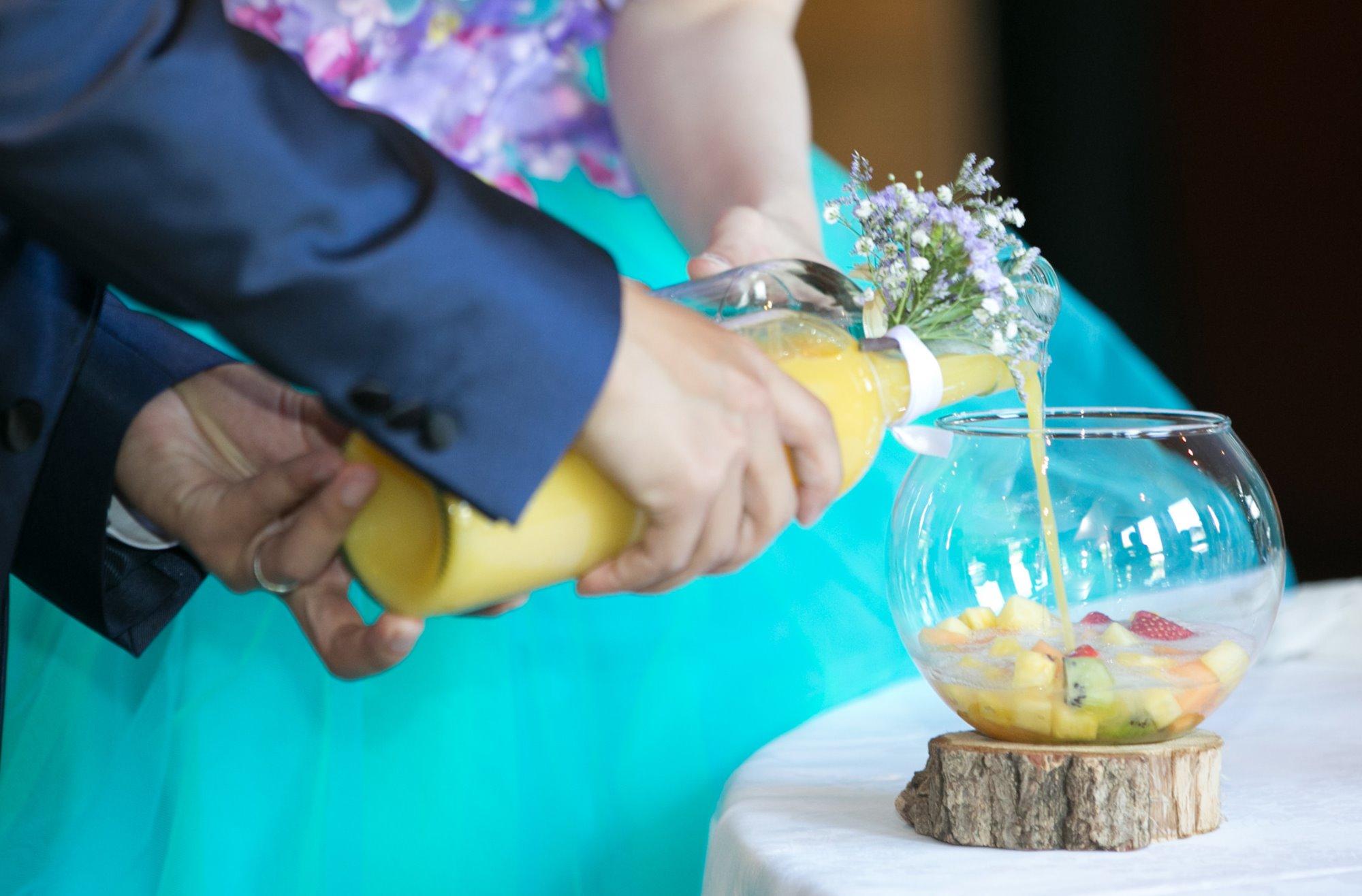 なるべくたくさんの人とゆっくり会話をしたかったので、各テーブルに写真を撮りに行ったり、歓談の時間を多くとりました。お色直しの際には、新郎の出身地の“ポンジュース”を使って「フルーツポンチサーブ」をしたり、自分達らしさも取り入れながら、全員と少しずつでも会話する機会を設けることが出来てよかったです!