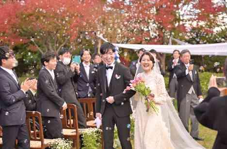 ガーデンウェディングは当初からの希望でしたが、冬場であったため寒さが心配でした。ゲストには温かい格好で来てね!と伝え、式場からも膝掛けを準備してもらうなど配慮していただきました。実際に式当日を迎えるとお天気に恵まれ、お庭の木々が色づいてとても温かな雰囲気になりました。ブーケセレモニー、姪っ子のリングガール、友人からの誓いの言葉などを取り入れてゲストとの距離がぐっと近くなったことも嬉しかったです。