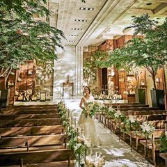 【天高6M×まるで欅並木道を歩むような木漏れ日溢れる空間】バージンロード15Mのデザイナーズチャペル。家族の絆を感じるキャンドルセレモニーでオリジナル人前式も。生演奏が響く洗練上質空間で感動の挙式体験