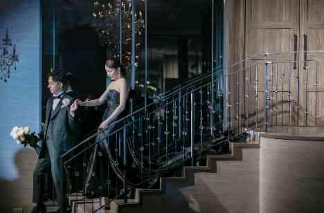 当初から階段からの入場に憧れていた新婦。見学時からイーストスイートの階段に一目惚れしてくださり、会場をご決定。本番はおふたりの好きなブルーノマーズの曲で盛り上げて再入場の演出を盛り上げました!さらにカラードレスに選んだのはアントニオリーヴァのブラックドレス。シックな装いに、ゲストからも大きな歓声が上がりました。