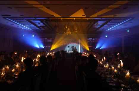 ウエストスイート会場の特徴である長方形・室内型を生かし、流しテーブルを友人卓、親族は円卓にした事でメインテーブルと親族との距離感も遠くないレイアウトに!室内型を生かし、キャンドルを多めにご用意した事で幻想的な空間に!LIVE感を演出する為に、レーザー演出・キャンドルイリュージョン・インドアスパークラー(室内花火)を行いゲストと大いに盛り上がりました!