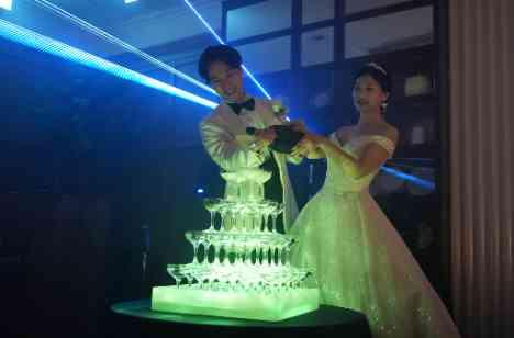 王道の披露宴にはしたくないというご要望から、お酒好きのおふたりらしく乾杯前にシャンパンタワーを行いました!また、ゲストの中でコロナ禍で結婚式を断念してしまったゲスト数名へミニウエディングケーキをサプライズでご用意し、ケーキ入刀・ファーストバイトを行う演出も行いました。余興・スピーチ等を行わない代わりに、デザートビュッフェと歓談の時間を沢山設け、ゲストと過ごす時間をつくる事が出来ました☆