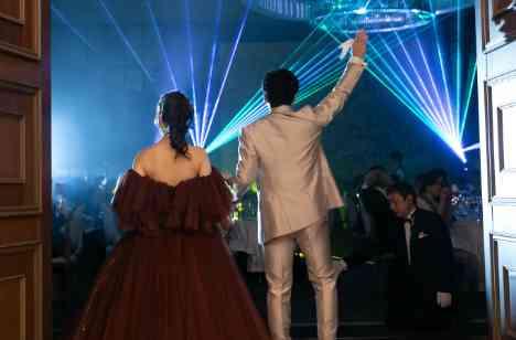 グランドセントラルの会場は天井高(5,5m)があり、さらに中央には大きなシャンデリアもある会場。レーザーライティングを入れることにより、シャンデリアにキラキラとレーザーが反射、LIVE感のあるシーンを演出することが可能となっております! ゲスト様も盛り上がり、インパクトのある入場シーンとなりました!