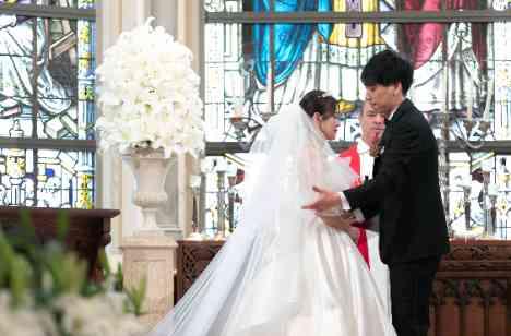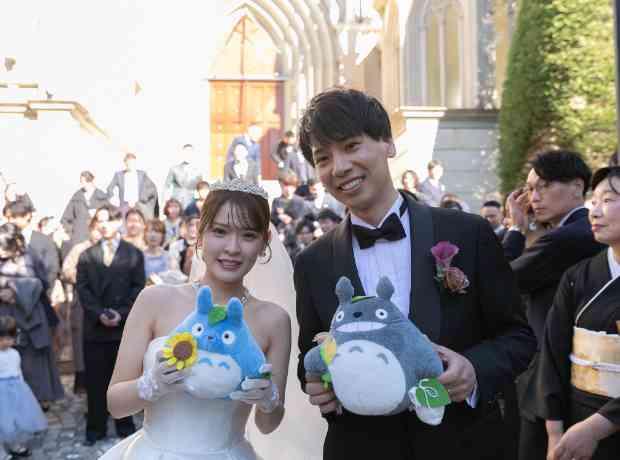 おふたりはセントグレース大聖堂でのコラボ式にて挙式を行いました。当日はとても天気が良く皆様と和気あいあいと楽しくセントグレース大聖堂からご移動いただきました。セントグレース大聖堂の重厚感のあるステンドグラスのチャペルはゲストの方々もとても反応が良かったです。フラワーシャワーも大階段からしていただきより素敵なシーンになりました。