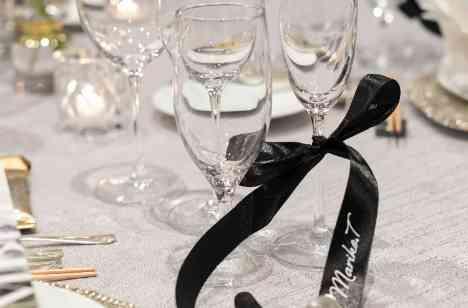 席札にもこだわってくださったおふたり。席札をリボンにしてご作成いただき、前日におふたりと3人でゲストのシャンパングラスに1つずつ括り付けました。当日のお写真をみてもとてもかわいらしく映えており、ゲストの方々もたくさんお写真を撮ってくださいました。人数が80名いらっしゃる中で思いを込めてくくったリボン、ゲストの方々にも思いが伝わったようです。