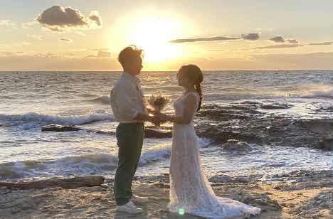 パーティ当日は挙式をしないため、家族にも前撮影に来てもらって人前式風演出を行いました。 家族の前での誓いの言葉は少し緊張感と恥ずかしさがありましたが、家族全員にとっての大切な思い出となりました。 ロケーションが本当に綺麗で結婚式場では撮れない素敵な写真と映像、そして人前式ができました。 前撮影でパーティの時に使用するオープニング映像を撮影し、友人たちにも見てもらえて満足しています。