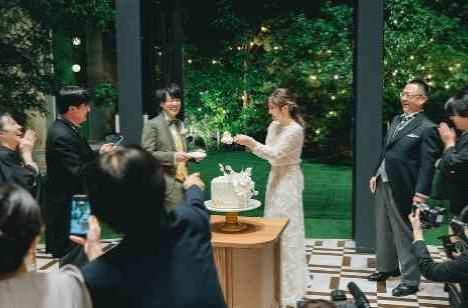 ウエディングケーキはあまり見たことのないスクエア型のケーキにルナリアと金箔を飾り、シンプルでおしゃれなケーキにしました。お茶漬け&デザートビュッフェもゲストの皆様に喜んでもらえました!無事に結婚式を迎えられたのは、アコールハーブのスタッフの皆さんのおかげです!親身になって考えてくれたり、提案をしてくれてすごく嬉しかったです。素敵な結婚式でした。本当にありがとうございました!