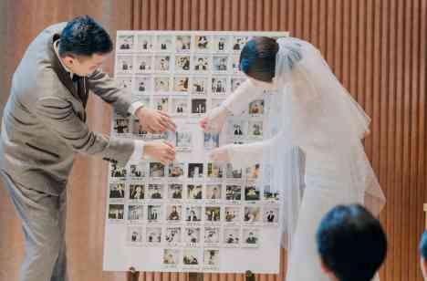 私たちは、人前式を選びました。参列者全員が承認ということで、結婚証明書にはゲストにも参加してもらいました。ゲストの皆様のお写真(チェキ)に囲まれ、最後に挙式中に私たちの写真を撮影し完成させました。結婚式という一生に一度の晴れの日をともにした皆様の写真に囲まれる証明書という最高の記念・宝物になりました。