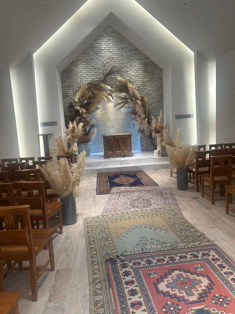 アンティークな雰囲気でとてもかわいいです。挙式会場はコンパクトで、ドライフラワーの装飾がついており、何もしなくても映えます。
