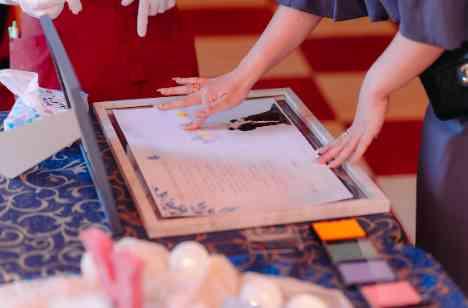 おふたりはゲスト皆様がおふたりの結婚の証人になる人前式をお選びになりました。 結婚証明書は「ウエディングツリー」にして、ゲスト皆様からの指紋スタンプで作成しました!今後ご自宅に飾っても可愛い思い出の品ができたかと思います。 また、おふたりは誓いのキスはしたくないというご希望があったので、挙式の退場時にする「クロージングキス」に変更しました!