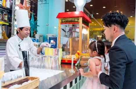 テーマパークが大好きなおふたりには欠かせない『ポップコーン』挙式までの間お待ちいただく待合スペースで、キャラメルポップコーンをご提供しました! みんな大好きなキャラメルの香りが会場いっぱいに広がって、お子様から大人の方まで嬉しい演出でまさにテーマパークウエディングでした! 待ち時間も楽しめる工夫が素敵ですよね♪