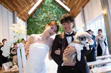 おふたりには大切な愛犬がいらっしゃいました リングドッグや結婚証明書の証人など 愛犬も大活躍の1日 おふたりにとって大切な家族の一員である愛犬 皆様に応援されながら おふたりの元へ指輪を運んでいただきました WEEKEND HOUSEでは 犬好きにはたまらない演出をたっぷり行うことができます