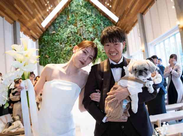 おふたりには大切な愛犬がいらっしゃいました リングドッグや結婚証明書の証人など 愛犬も大活躍の1日 おふたりにとって大切な家族の一員である愛犬 皆様に応援されながら おふたりの元へ指輪を運んでいただきました WEEKEND HOUSEでは 犬好きにはたまらない演出をたっぷり行うことができます