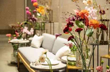 「会場のイメージはシンプルだけどお洒落な感じ!」 これはおふたりの譲れないイメージでした カラフルでも落ち着いたトーンの装花を 小瓶に分けて装飾することで 派手さを抑えつつ大人っぽい色味のお洒落な空間を演出 ウッド調のテーブルとの相性もよく おふたりのイメージ「シンプル且つお洒落な空間」を 演出することができました