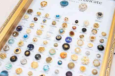 洋服好きなおふたりにちなんで古着屋さんで集められたというボタンの結婚証明書 おふたりが集められたボタンを受付でゲスト様におひとり様ひとつずつ選んでいただき ひとりひとりの想いが詰まった証明書 挙式では証明書へのサインの代わりにおふたりとおふたりの愛犬のボタンもはめ込んで完成!! 参加いただいている皆さまの想いが一つになった瞬間となりました