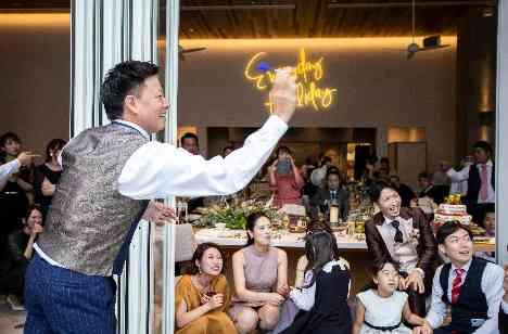 おふたりらしいゲスト参加型の楽しく・盛り上がることのできるパーティーを行って頂きました テーブルを囲んでお料理を召し上がって頂きながら楽しい時間をお過ごし頂きました パーティーの途中ではゲスト参加型の余興を入れるなど 盛り上がっていました