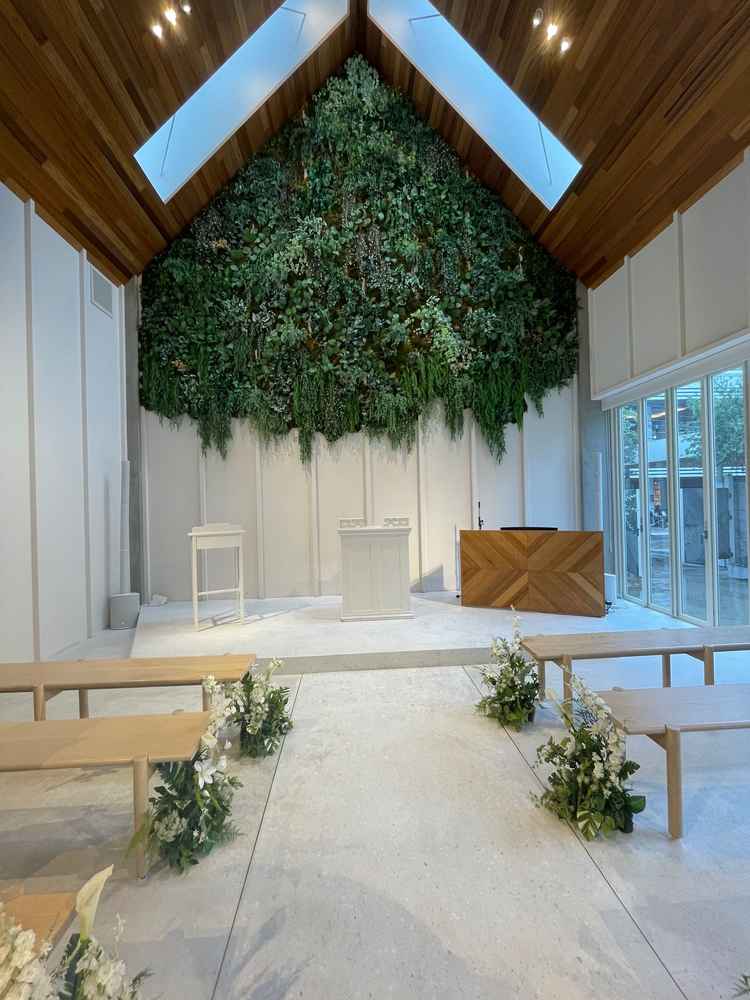 ナチュラルな雰囲気の会場で、肩肘張らずに式ができそうな印象。ガーデンが使えるのも他社とは違うポイント。