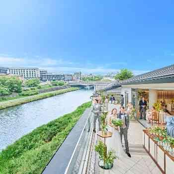 - 鴨川沿いに広がるオープンテラスは自由に行き来が可能。開放的なオープンエアーの空間をお楽しみください。
