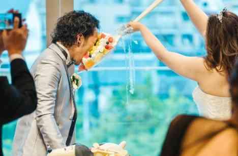 パーティはゲストの皆様と楽しく!ご友人とのイベントやオープンキッチンを使った演出などでおふたりらしいおもてなし。 また、ケーキカットのあとは90cmのBIGスプーンを3歳の姪っ子が持って登場。BIGスプーンでしょうたさんの顔面にケーキバイト!定番のファーストバイトもおふたりの人柄が溢れた楽しい時間になりました。