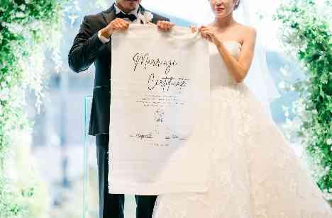 お世話になった皆様が証人となり 夫婦としての誓いをたてる「人前式」を行いました。 結婚証明書は挙式後もお洒落に飾ることができる手作りタペストリー。 結婚の誓いを込めてふたりでタペストリーにサインをして披露しました。 いつまでも結婚式での誓いや時間をこのタペストリーを見て思い出せるように。 そんな唯一無二のふたりらしい結婚証明書になりました。
