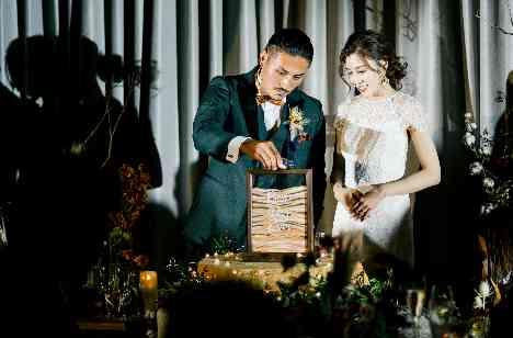 お色直し入場後、私たちからゲストへ幸せの灯りを繋ぐキャンドルリレーを行いました。 ラストにはキラキラ輝く幸せの灯りの中 ゲスト皆様から紡ぎ重ねていただいたサンドアートをふたりで完成させました。 ゲストと一緒に作り上げたお洒落でロマンチックなワンシーン。 幻想的なだけでなく、ゲストとの繋がりを感じられたあたたかく優しい時間でもありました。