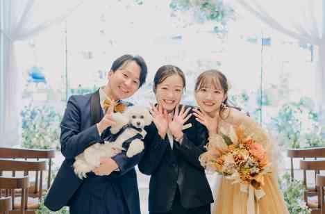挙式スタイルは教会式で。おふたりのとっても可愛らしい愛犬がリングドッグに結婚証明書と大活躍!あたたかい家族のカタチをお披露目となりました。おふたり「愛犬マルプーの要素をwelcomeスペースからリングドッグ、結婚証明書、フラワーシャワー、ぬいぐるみトス、ウェディングケーキ、メニュー表、フォトサインなどのコンセプトに統一感が出るようぎゅぎゅっと詰め込みました!」